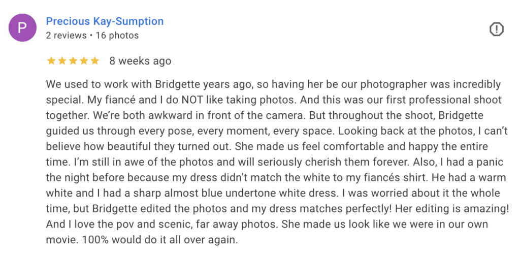 Hey friend, I’m Bridgette!! A wedding photographer based in Lake Tahoe. I’m so excited you’re here! I’d love to help you plan the engagements of your dreams, and capture all the moments for you to remember forever! You deserve to feel like yourself and have photos that truly represent your love story.